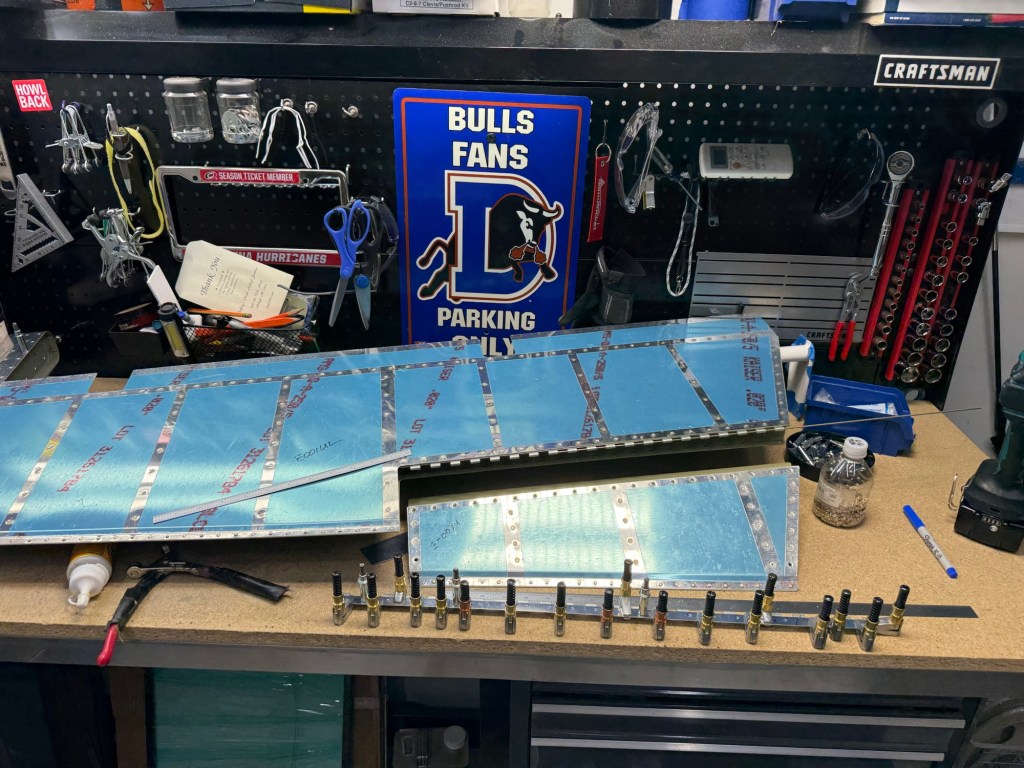 About this time, I started to realize something wasn’t lining up correctly between the trim tab and the elevator. I had drilled, deburred and riveted the trim tab hinge THEN noticed that I had not confirmed the servo bracket lined up with the servo rod coming from the trim motor in the elevator. Definitely NOT a joyous moment when I realized I had to backtrack and remove all of these rivets! Fast forward to me drilling a new hinge from Aircraft Spruce. This time with the servo rod installed, checked and double checked so I am back to where I was, finishing up the trim tab. All in all, not really a terrible goof but a setback for sure.